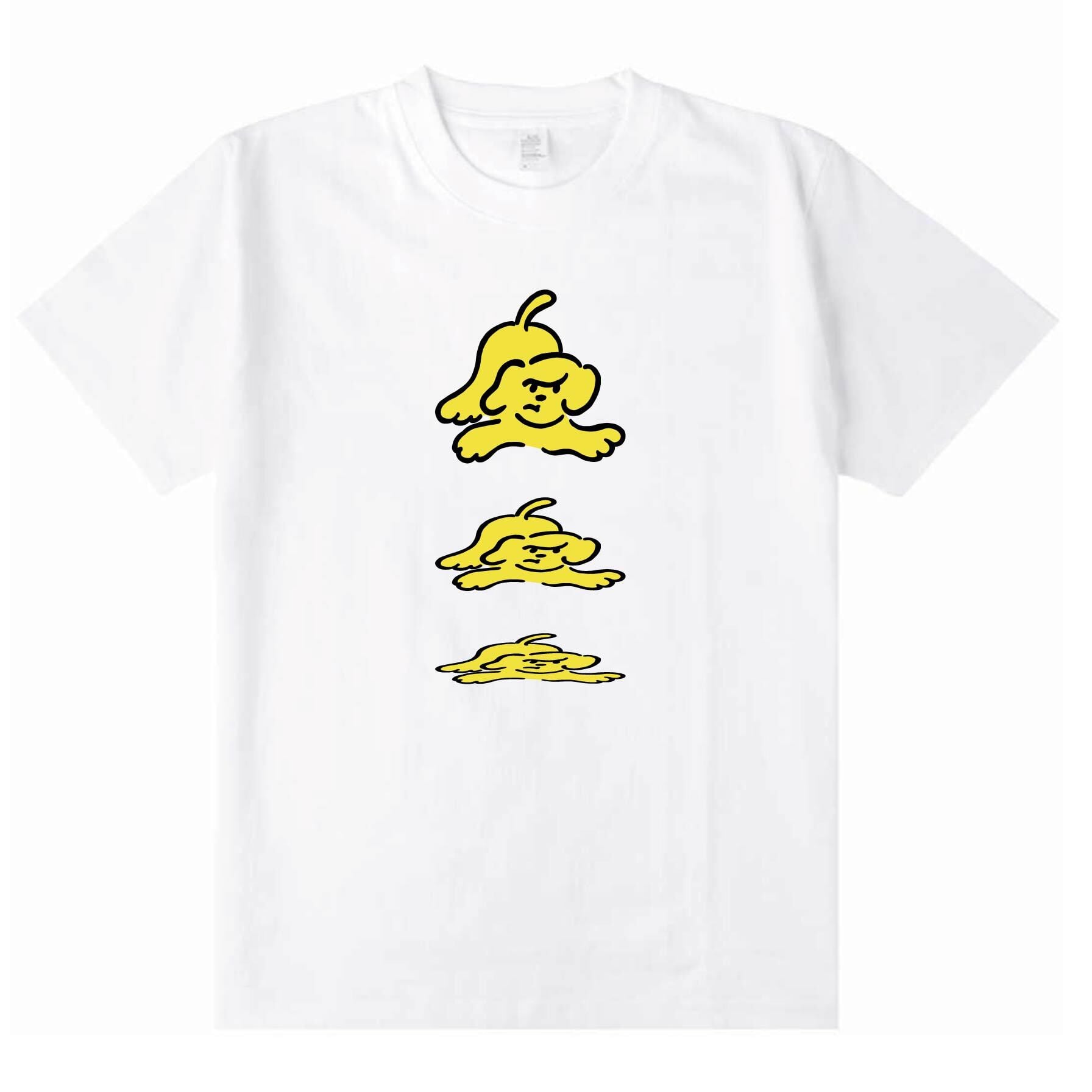 程よい生地厚の着心地の良いホワイトのボディにだんだん見えなくなっていくYELLOW DOGがキャッチーで目を惹くTシャツです。